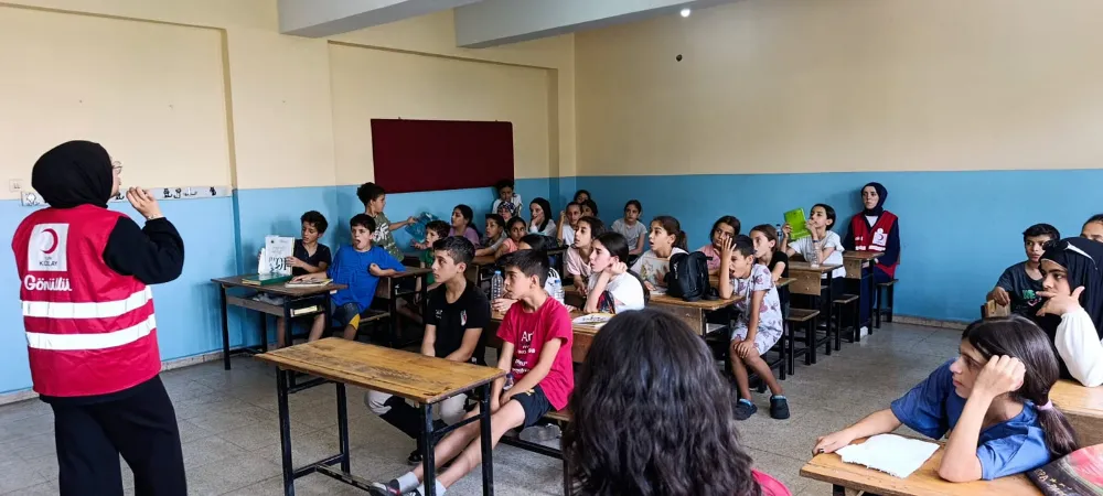 Genç Kızılay gönüllüleri, olası doğal afetler karşısında alınması gereken ilk önlemler, çanta hazırlığı ve güvenli toplanma alanları konusunda öğrencileri bilgilendirdi.