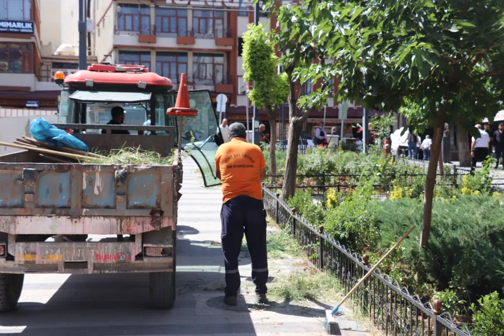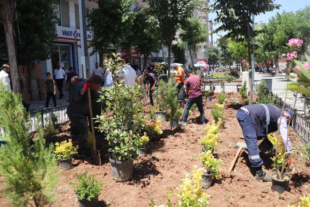 Cadde boyunca süs bitkileri ekilirken, yabani otlar temizlendi ve çevre daha düzenli hale getirildi.