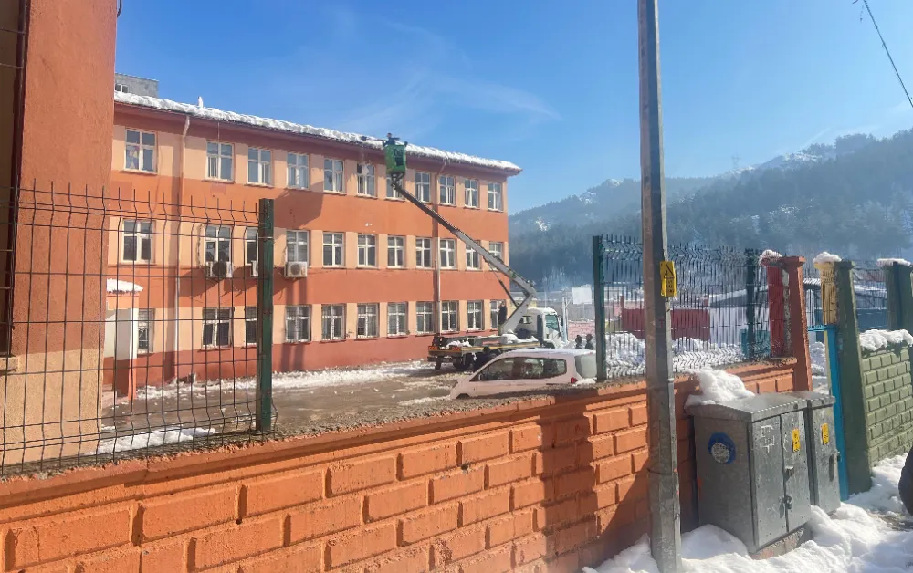 Yaptığımız haberlerin ardından okul bahçelerinde biriken karlar ve bina çatılarını tehdit eden buz sarkıtlarıyla ilgili önemli bir adım atıldı. Öğrenciler ve vatandaşlar için risk oluşturan alanlarda, vinç (dedeaj) yardımıyla temizlik çalışması gerçekleştirildi.