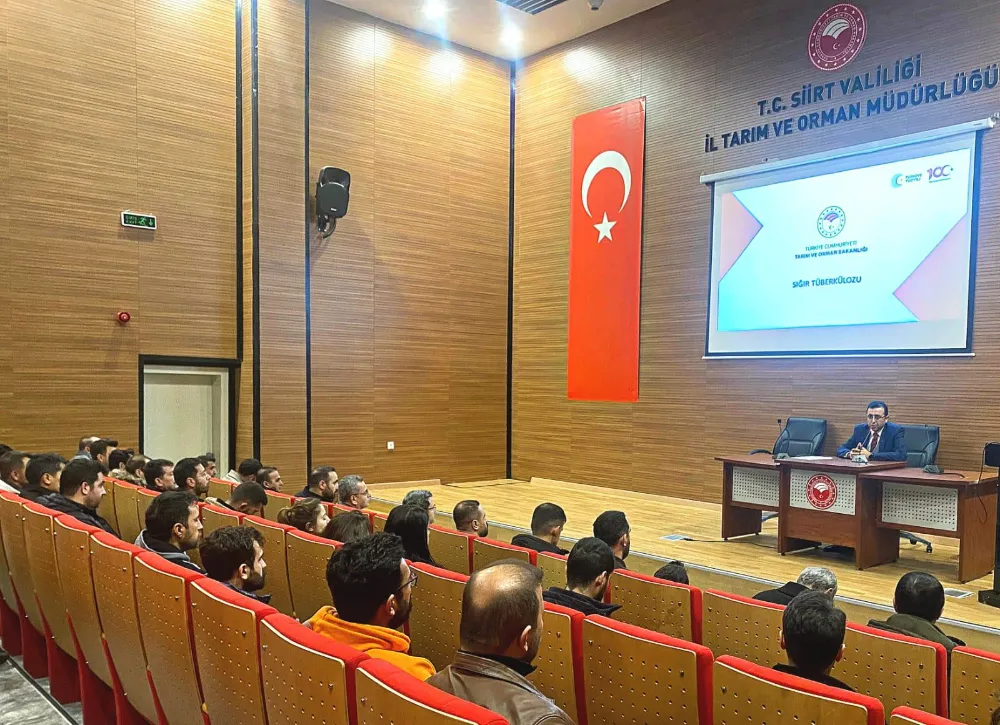 Siirt Merkez ve İlçe Tarım ve Orman Müdürlüklerinde görev yapan tüm Veteriner hekimlere Tüberküloz hastalığının teşhisi ve yapılacak işlemlerle ilgili eğitim verilerek gerekli bilgilendirmeler yapıldı.