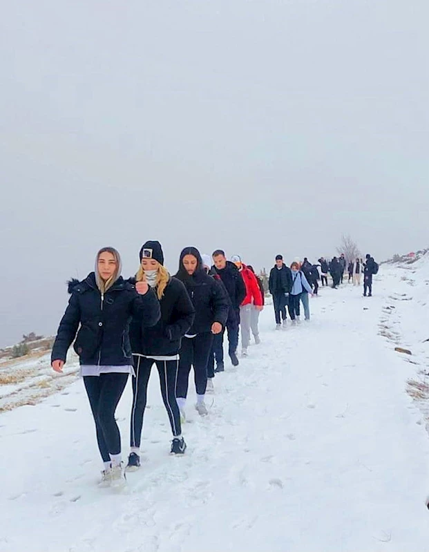 Elazığ’da karla kaplı Hazarbaba Dağı’nda öğrencilerin katılımıyla trekking etkinliği düzenlendi.