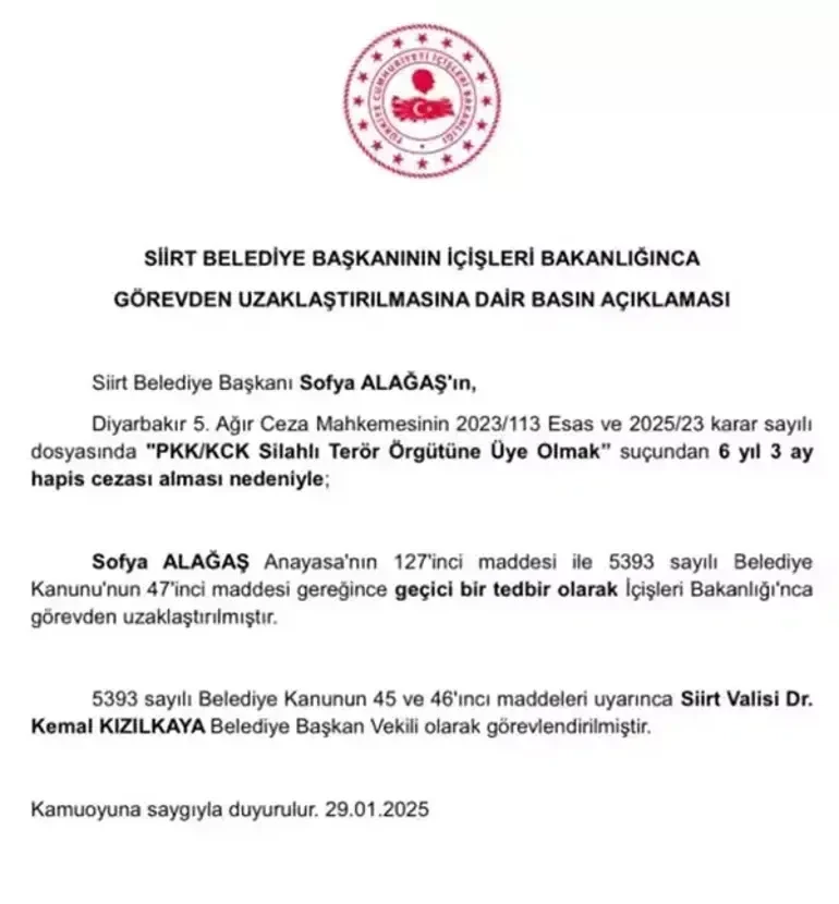 İçişleri Bakanlığı tarafından Siirt Belediyesine Vali Kemal Kızılkaya kayyum olarak görevlendirildi.