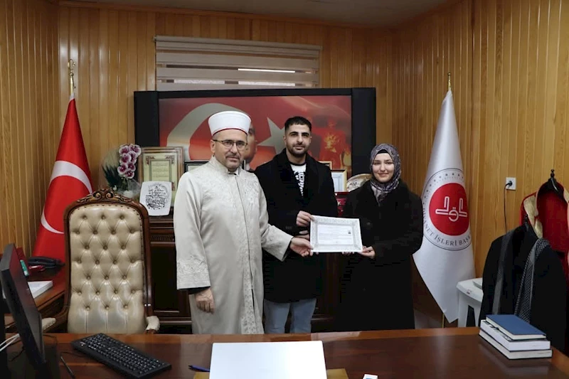 İl Müftüsü Üstündağ ise Müslüman olan Ceyda’yı tebrik ederek "İhtida Belgesi" ile birlikte, Kur’an-ı Kerim ve ilmihal hediye etti.