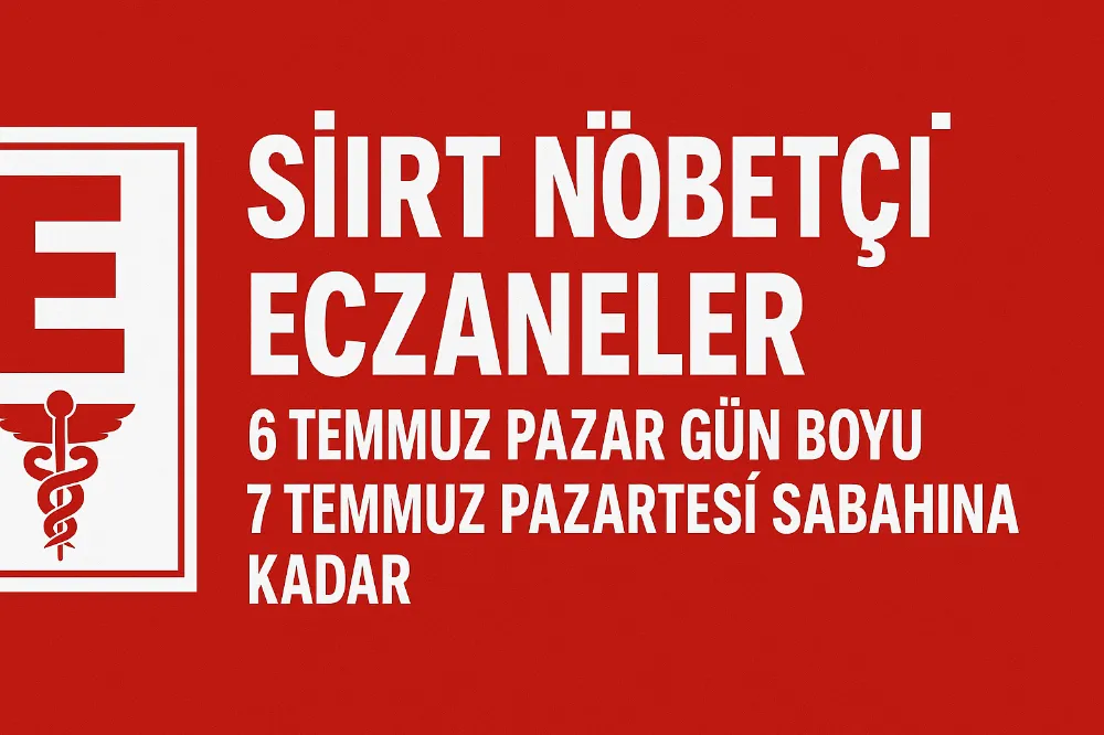 İŞTE 6 TEMMUZ PAZAR GÜNÜNDEN 7 TEMMUZ PAZARTESİ SABAHINA KADAR SİİRT GENELİNDE NÖBETÇİ ECZANELERİN LİSTESİ