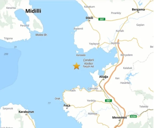 Afet ve Acil Durum Yönetimi Başkanlığı (AFAD), İzmir’in Dikili ilçesi açıklarında 4.0 büyüklüğünde bir depremin meydana geldiğini duyurdu. Ege Denizi'nde saat 17.09’da kaydedilen sarsıntı, 10,67 kilometre derinlikte gerçekleşti.