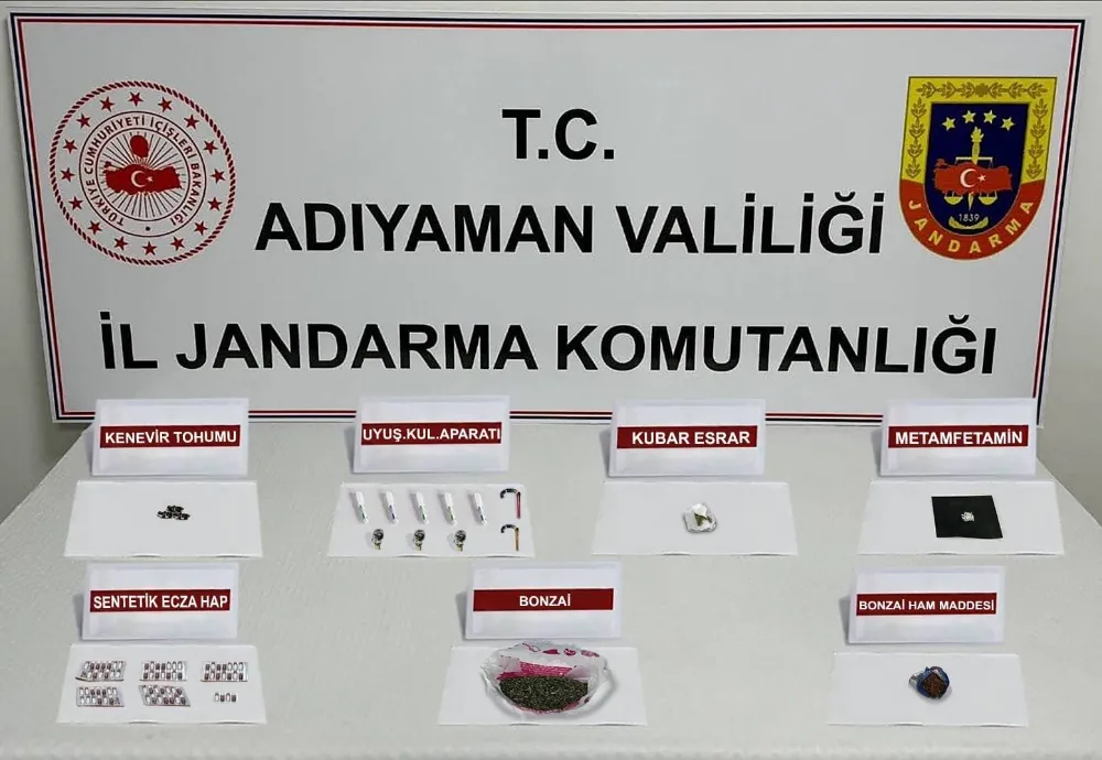 İl Jandarma Komutanlığı ekipleri, sorumluluk bölgelerinde yapmış oldukları uyuşturucuyla mücadele denetimleri kapsamında yaptıkları çalışmalar çerçevesinde 91 gram bonzai, 74 adet sentetik ecza hap, 16 gram bonzai hammaddesi, 3 gram kubar esrar, 2 gram kenevir tohumu, 1 gram metamfetamin 10 adet aparat ele geçirildi. Uyuşturucu maddeleri muhafaza altına alınırken konuyla ilgili olarak 35 şahıs hakkında işlem yapıldı. Gözaltına alınan 35 şahıs sorgulanmak üzere jandarma komutanlığına götürüldü.