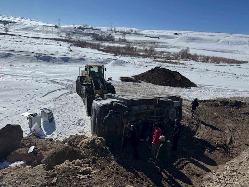 Van’ın Başkale ilçesinde kontrolden çıkan kamyon şarampole yuvarlanırken, sürücüsü yara almadan kurtuldu.