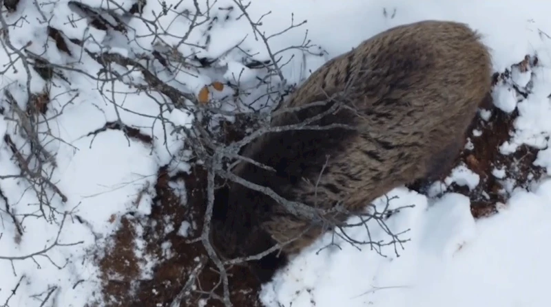 Vatandaşların güne kar yağışıyla uyandığı Erzincan’da karla kaplanan dağlarda dağ keçileri ve domuz sürüsü drone ile görüntülendi.
