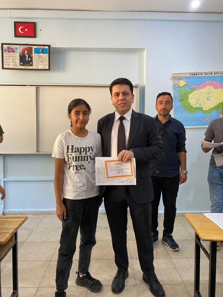 Karne törenine katılan Kaymakam Altıntaş, öğrencilere karnelerini tek tek takdim ederken, başarılarından dolayı tebrik etti. Öğrencilerle sohbet eden Altıntaş, tatil döneminin dinlenme ve kendini geliştirme açısından önemli bir fırsat olduğunu belirtti.