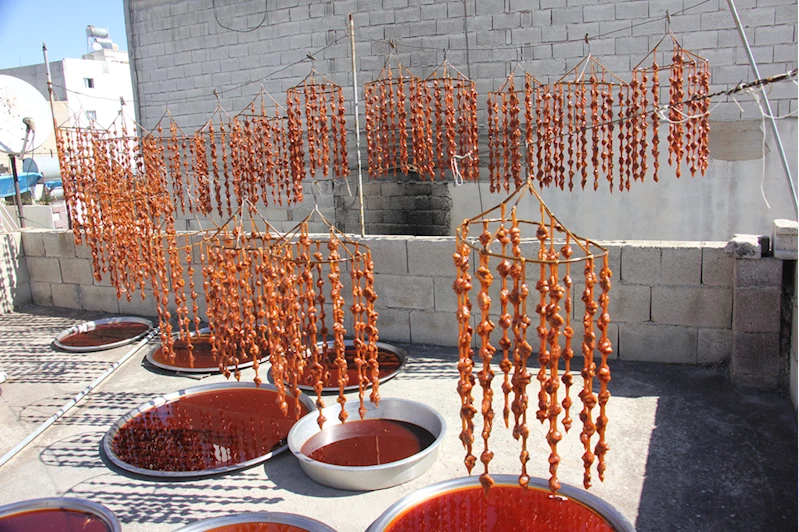 Geleneksel yöntemlerle bu ürünleri hazırlayan üreticiler, pekmez ve nişastayı krema şeklinde hazırlıyor. Ardından, daha önce iplere dizip kuruttukları ceviz içini hazırladıkları karışıma batırıyor.