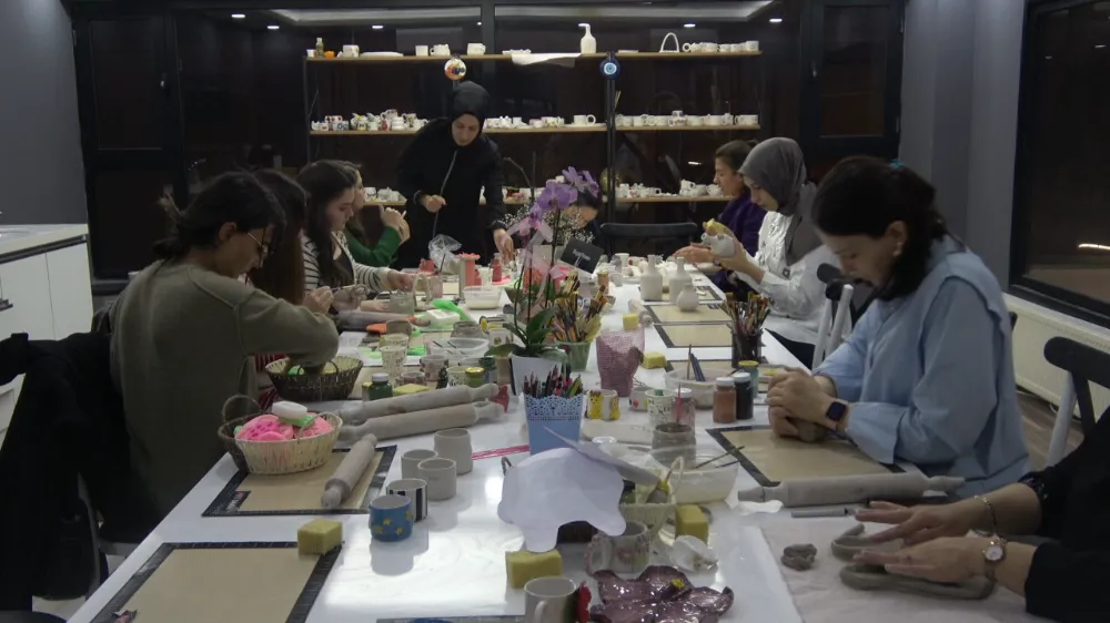 Kilis’te kadınların hem sanatsal üretim yaparak kendilerini ifade ettiği hem de günlük hayatın stresinden uzaklaştığı seramik atölyesi, yoğun ilgi görüyor.