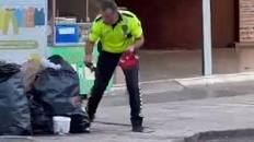 Kırıkkale'de trafik polisi çöpte bulduğu Türk bayrağını çıkartıp temizledi