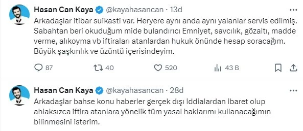 Emniyette ifadesi alınan genç kız, özel bir üniversitenin mezuniyet partisinde Hasan Can Kaya ile tanıştığını, daha sonra birlikte evine gittiklerini, burada bir süre alkol alıp sohbet ettiklerini, sohbet esnasında Kaya'nın kendisiyle yakınlaşmak istediğini, kendisinin ise reddedince evden çıkmak istediğini söyledi. Kaya'nın kendisinin evden çıkmasına izin vermediğini anlatan genç kız, bunun üzerine arkadaşına canlı konum ve mesaj atarak polise ihbarda bulunmasını istediğini söyledi. Ancak Nazlıcan A. emniyette, kendisini alıkoyan Kaya'dan şikayetçi olmadığını belirtti.