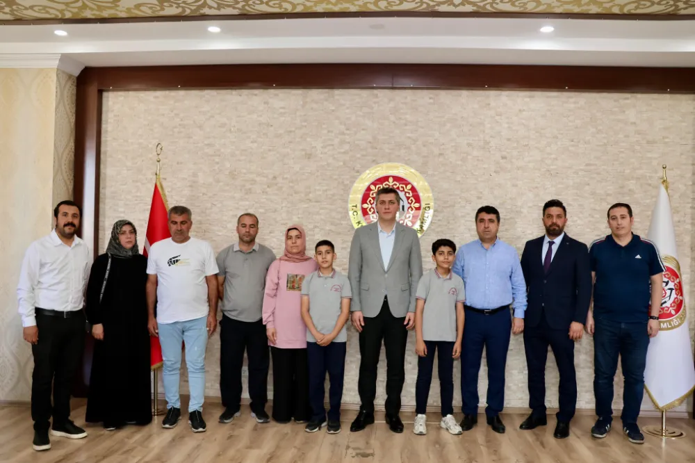 İlköğretim ve Ortaöğretim Kurumları Bursluluk Sınavı’nda (İOKBS) 500 tam puan alarak Türkiye 1.’si olma başarısı gösteren Selahattin Eyyubi İmam Hatip Ortaokulu 6. sınıf öğrencileri Yusuf Toğay ve Mustafa Taş, Kurtalan Kaymakamı Sayın Samet Serin’i makamında ziyaret etti.