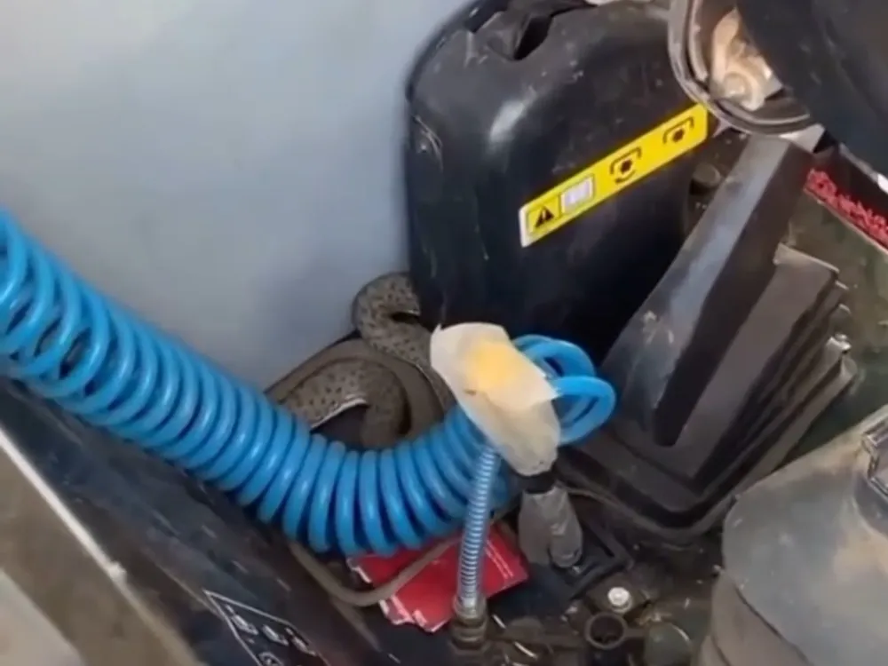 Siirt'in Kurtalan ilçesinde bir çiftçinin traktörüne giren yılan korku dolu anlar yaşattı.