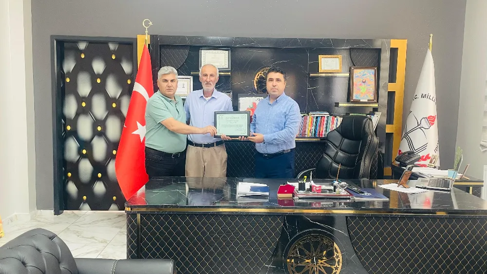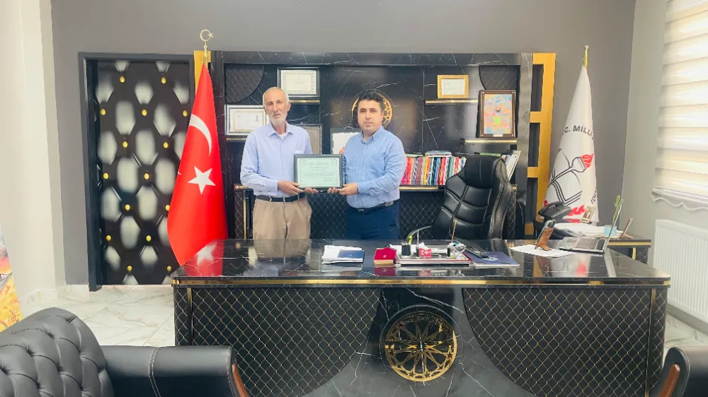 İlçe Müdürü Faysel Polat’tan Plaket Takdimi Emekliye ayrılan Ahmet Avcı’ya, Kurtalan İlçe Milli Eğitim Müdürü Sayın Faysel Polat tarafından teşekkür plaketi takdim edildi.