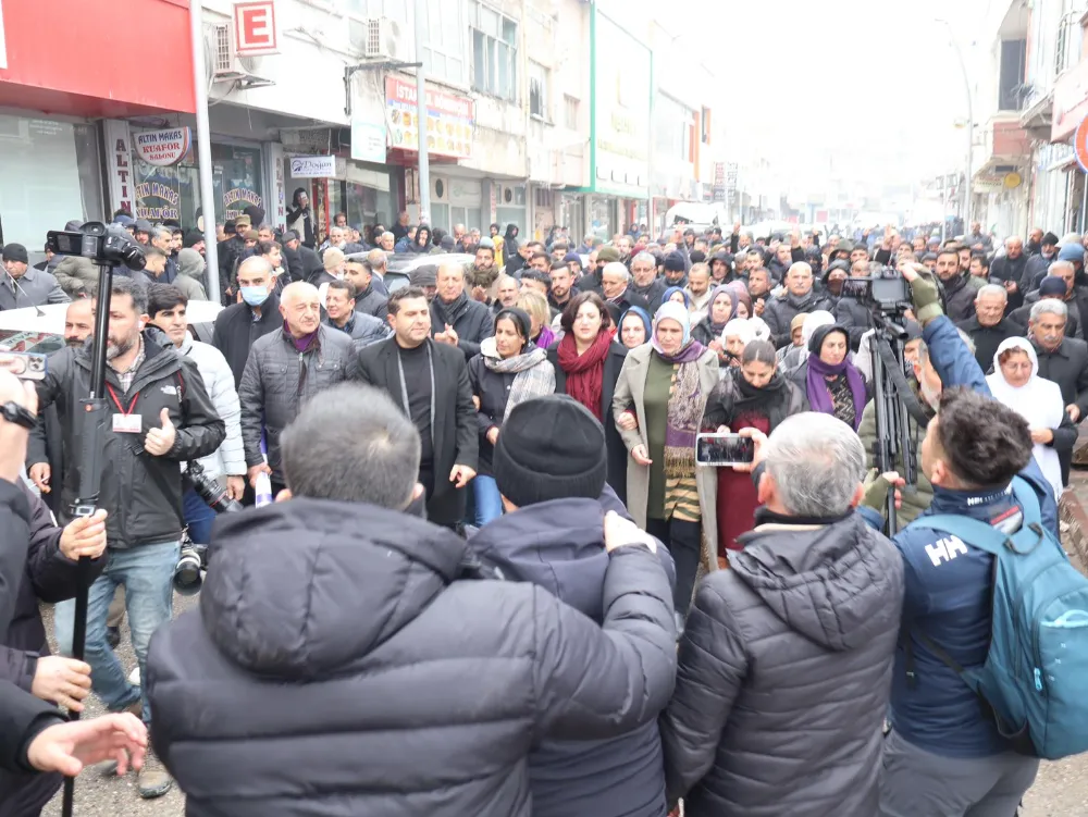 DEM/DBP il, ilçe ve belde yönetimleri, parti bileşenleri ve çok sayıda yurttaşın yer aldığı yürüyüş, DEM/DBP Kurtalan İlçe Binası önünde başladı.