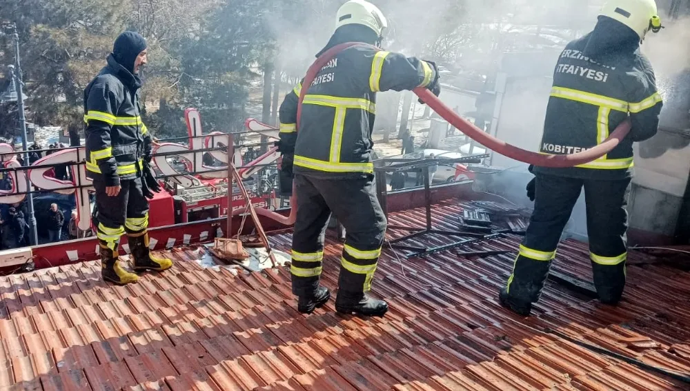 Erzincan’da lokantanın mutfak bölümünde başlayıp çatıya sıçrayan yangın, itfaiyenin müdahalesiyle söndürüldü.