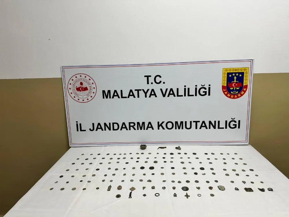 Malatya’nın Yeşilyurt ilçesinde jandarma ekipleri tarafından düzenlenen operasyonda 131 adet sikke ile çok sayıda tarihi eser niteliği taşıyan obje ele geçirildi. Olayda ilgili 1 kişi gözaltına alındı.