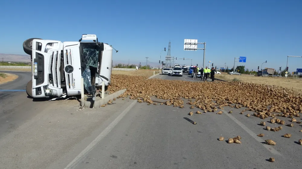 Malatya'da sürücünün kontrolünden çıkan pancar yüklü tır devrildi. Tonlarca pancarın yola savrulduğu kazada 1 kişi yaralandı.