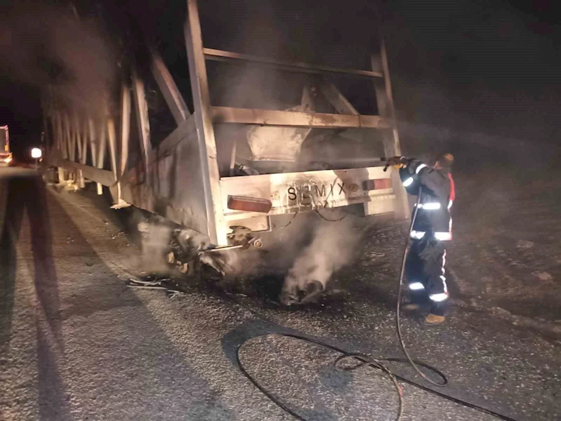 Yangın nedeniyle tırda maddi hasar meydana gelirken, jandarma olayla ilgili inceleme başlattı.