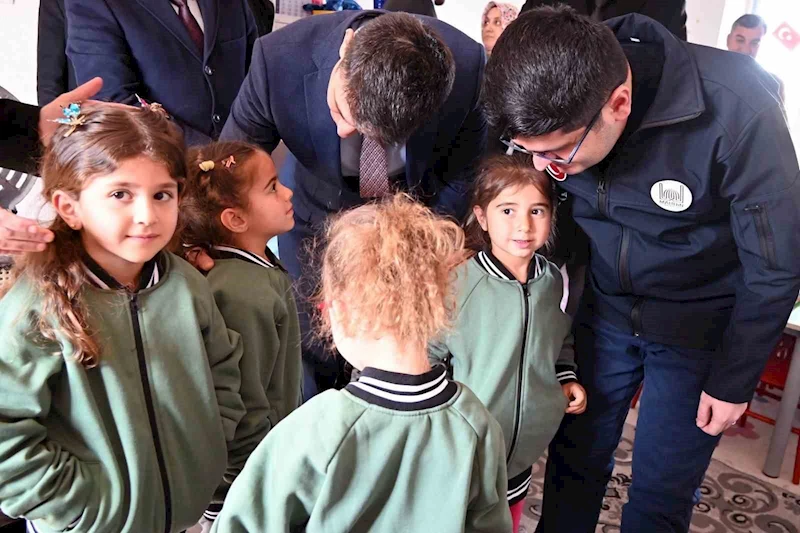 Proje kapsamında, Derik Kaymakamı Yunus Emre Bayraklı ile Mardin Büyükşehir Belediyesi Genel Sekreteri Fatih Eroğlu anasınıfı öğrencilerine oyuncak setlerini dağıttı.