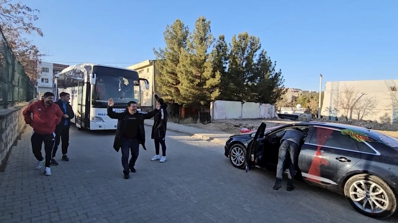 Mardin’in Mazıdağı ilçesinde Mazıdağı Fosfat Spor Kulübü futbolcuları, yoldan geçen gelin arabasından damadı indirip, yol ortasında çiftetelli oynadı. O anlar bir vatandaşın cep telefonu kamerasına yansıdı.