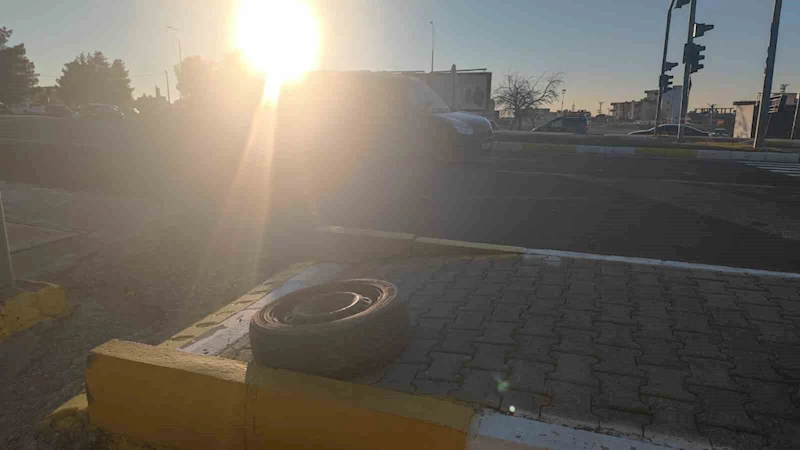 Mardin’in Artuklu ilçesinde seyir halindeki bir hafif ticari aracın lastiği yerinden fırladı. Şans eseri, akan trafikte kazaya yol açmadı.