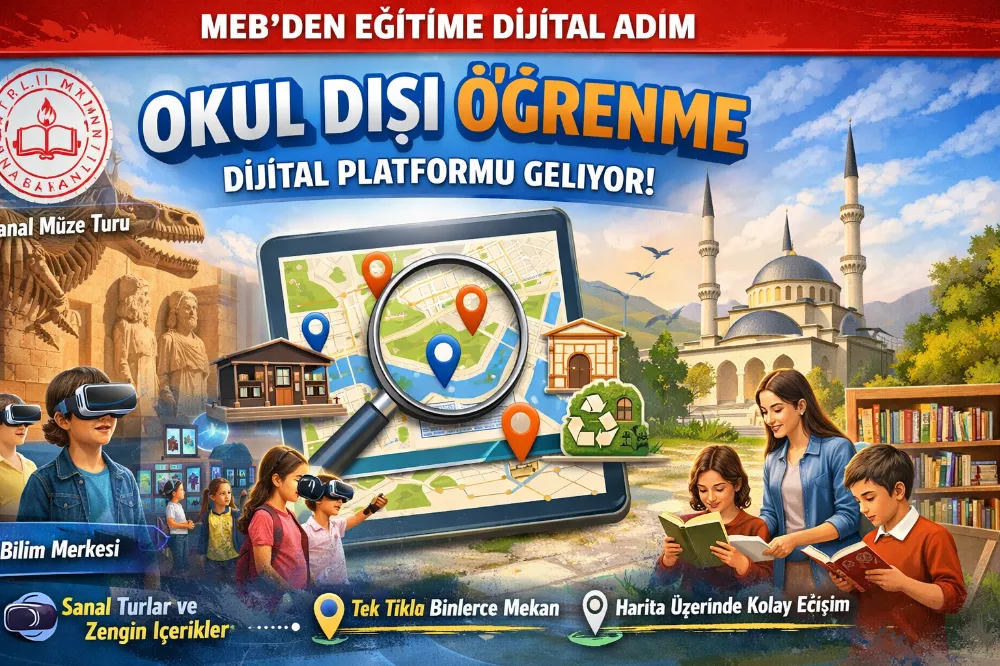 Öğretmenlerin ders kazanımlarına uygun müze, kütüphane, bilim merkezi ve benzeri okul dışı öğrenme ortamlarına hızlıca ulaşmasını sağlayacak “Okul Dışı Öğrenme” platformu, sanal turlar ve zengin içeriklerle eğitim sürecini destekleyecek.