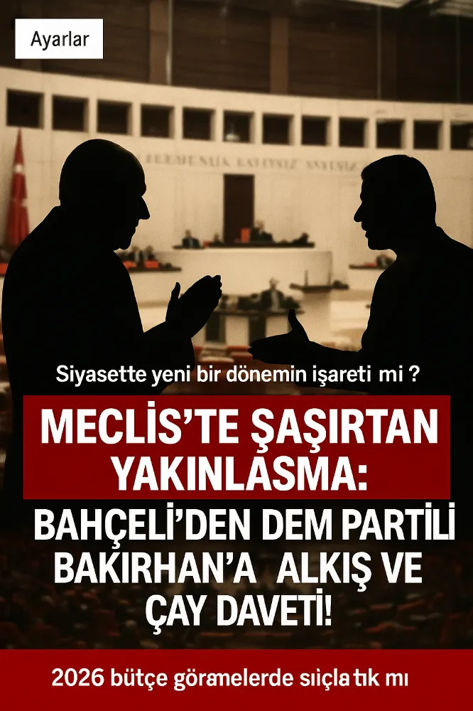 Türkiye Büyük Millet Meclisi’nde 2026 bütçe görüşmeleri devam ederken, siyasetin seyrini değiştirebilecek nitelikte bir temas yaşandı. Milliyetçi Hareket Partisi Genel Başkanı Devlet Bahçeli, DEM Parti Eş Genel Başkanı Tuncer Bakırhan’ın terörsüz Türkiye vurgusu yaptığı konuşmayı alkışladı, ardından kendisini çaya davet etti.