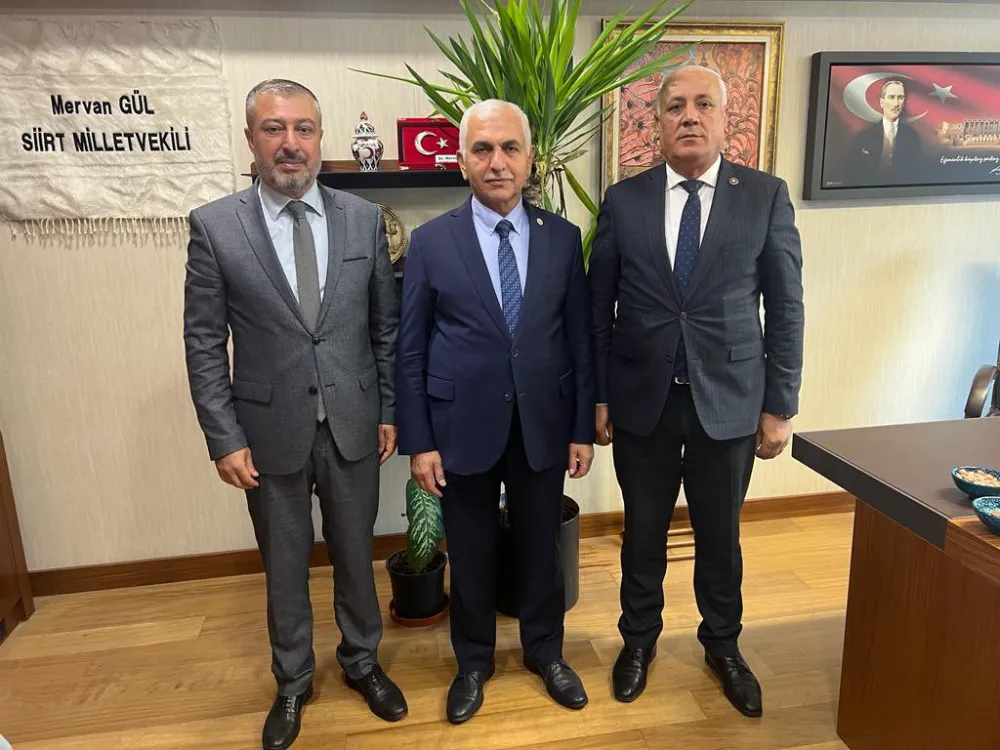 Siirt AK Parti merkez ilçe başkanı Hikmet Ekin, Kurtalan İlçe başkanı Salih Karataş, Baykan İlçe Başkanı Cahit Gümüş ve Siirt Ak Parti yönetim kurulu üyeleri Milletvekili Gül’ü TBMM’de ziyaret etti.