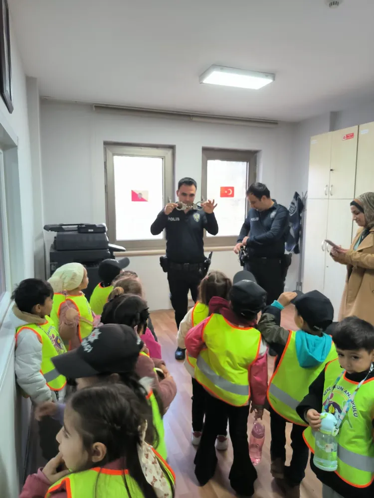 Ziyaret kapsamında çocuklar polislerle tanışarak meslek hakkında merak ettikleri soruları yöneltti. Polis ekipleri, mesleğin önemini çocukların anlayacağı sade ve eğlenceli bir dille anlattı. Ardından karakolun farklı birimleri gezilerek minik misafirlerin güvenlik hizmetleri hakkında bilgi edinmesi sağlandı. Çocuklar, polis araçlarına binerek direksiyona geçme, siren çalma ve anons deneme gibi etkinliklerle hem eğlendi hem de unutulmaz anlar yaşadı.