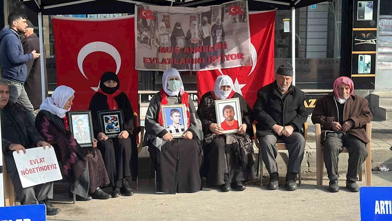 Muş’ta çocuklarının terör örgütü PKK tarafından kaçırıldığını belirterek DEM Parti il binası önünde oturma eylemi yapan anneler, evlat nöbetini kararlılıkla sürdürüyor.