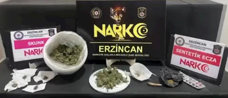 Erzincan İl Emniyet Müdürlüğü Narkotik Suçlarla Mücadele Şube Müdürlüğü ve İstihbarat Şube Müdürlüğü personelince, "Uyuşturucu Madde Ticareti Yapan ve Kullanan Şahıslara" yönelik yapılan çalışmalarda bir miktar uyuşturucu ele geçirildi.