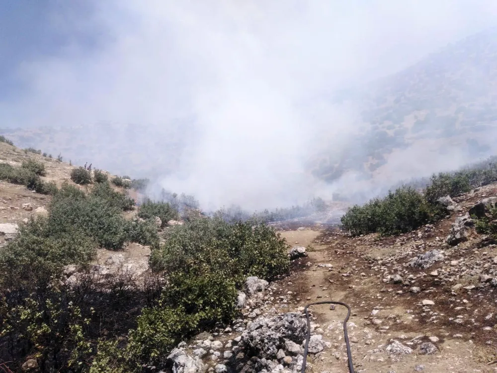 Mardin'in Nusaybin ilçesinde ormanlık alanda çıkan yangını söndürme çalışmaları devam ediyor.