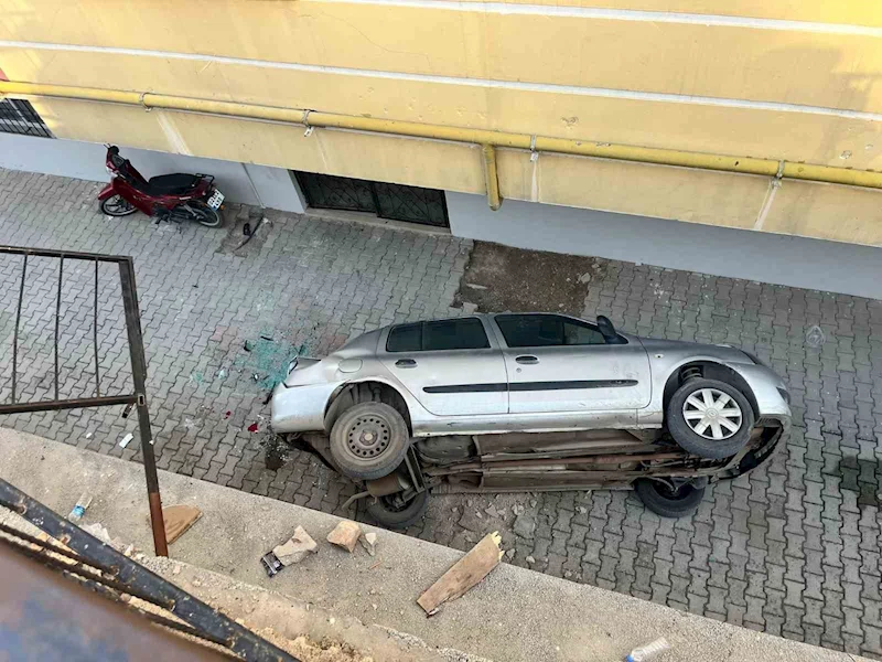 Adıyaman’ın Besni ilçesinde park halindeyken hareket eden otomobil apartman boşluğuna düştü.