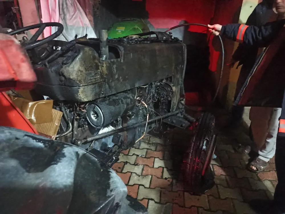 Traktörün kullanılmaz hale geldiği yangınla ilgili inceleme başlatıldı.