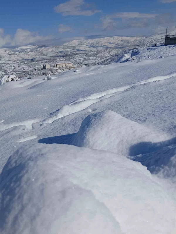 Malatya’nın Pütürge ilçesinde etkili olan kar yağışı bölgeyi beyaz örtüyle kaplarken, görsel bir şölen oluştu.