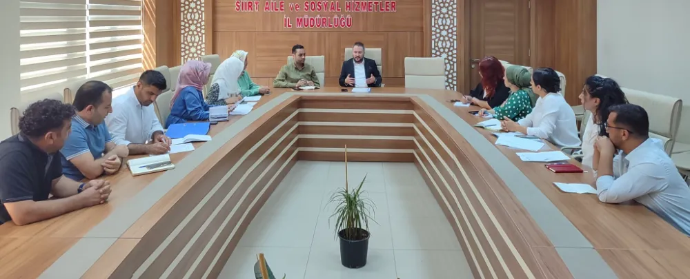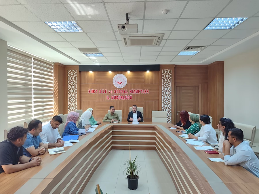 Aile ve Sosyal Hizmetler Siirt İl Müdürü Sabri Sidar, Kadın Hizmetleri Birimi Personelleriyle bir araya gelerek toplantı gerçekleştirdi. İl Müdürü Sabri Sidar başkanlığında, İl Müdürlüğü Kadın Hizmetleri Birimi ve kadınlara yönelik hizmet veren kuruluşlar ile toplantı düzenlendi. Toplantıda kadınlara yönelik verilen hizmetler ve eğitim ve tanıtım faaliyetleri hakkında istişarelerde bulunuldu.