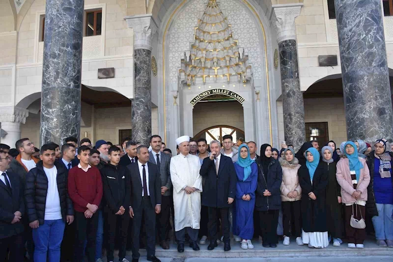 Gaziantep Valiliği, Şahinbey Belediyesi, İl Milli Eğitim Müdürlüğü ve Gaziantep İl Müftülüğü ile birlikte organize edilen proje kapsamında Umre Ödüllü Kitap Okuma Yarışması’nda 1’nci, 2’nci ve 3’ncü olan 177 öğrenci, Şahinbey Belediye Başkanı Mehmet Tahmazoğlu’nun katılımıyla Millet Camii’nde düzenlenen program ile Umre’ye yolcu edildi.