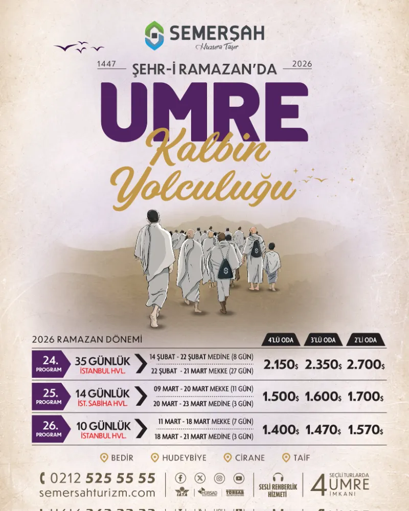 Semerşah Turizm, 2026 Ramazan döneminde üç ayrı Umre programı sunuyor: