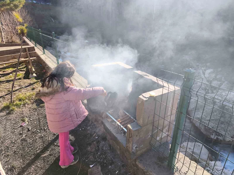 Havanın sıcak ve güneşli geçtiğini belirten çocuklardan Kerem kaya, adeta bahar günlerini yaşadıklarını, mangal yaparak güneşli günlerin tadını çıkardıklarını söyledi.