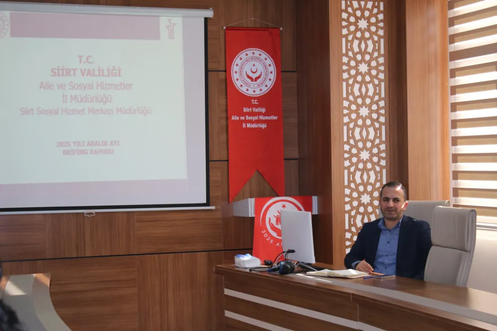 Siirt Aile ve Sosyal Hizmetler İl Müdürlüğü’nün 2025 yılı brifing raporu, İl Müdürü Sabri Sidar’ın öncülüğünde gerçekleştirilen toplantıda ele alındı. Düzenlenen toplantıda, kurumun yıl boyunca yürüttüğü faaliyetler, sunulan sosyal hizmetler ve hedeflenen projeler kapsamlı şekilde değerlendirildi.