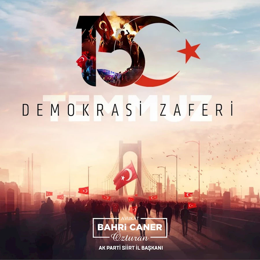 Siirt AK Parti İl Başkanı Av. Bahri Caner Özturan , 15 Temmuz Demokrasi ve Milli Birlik Günü dolayısıyla bir mesaj yayımladı.