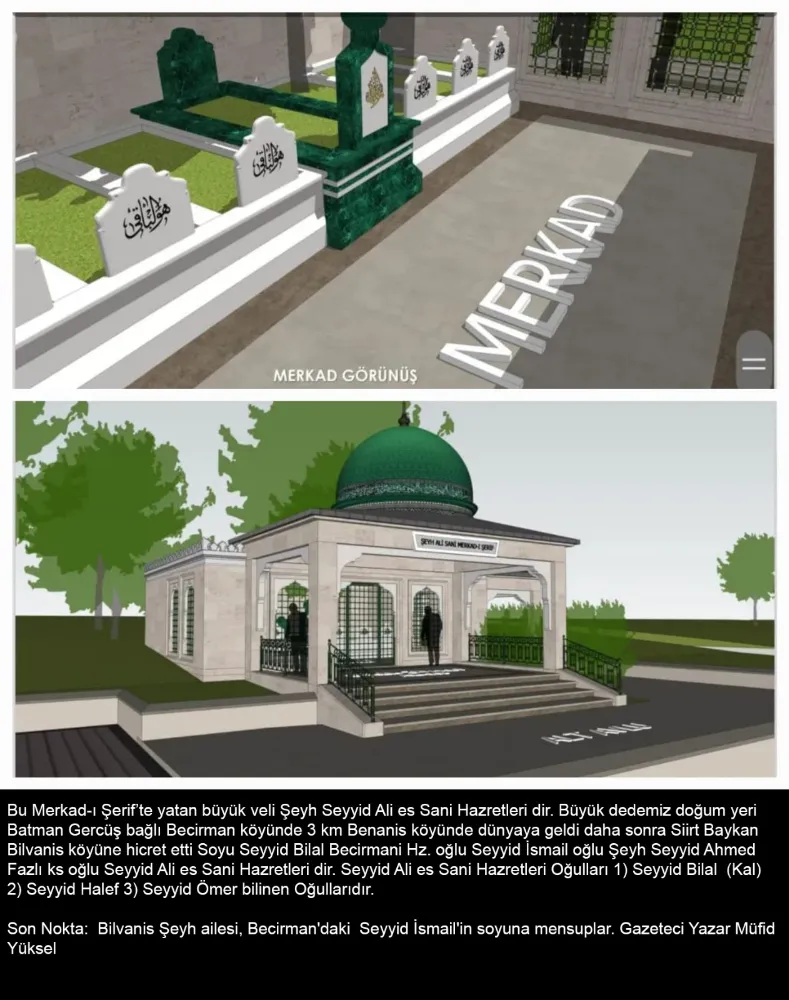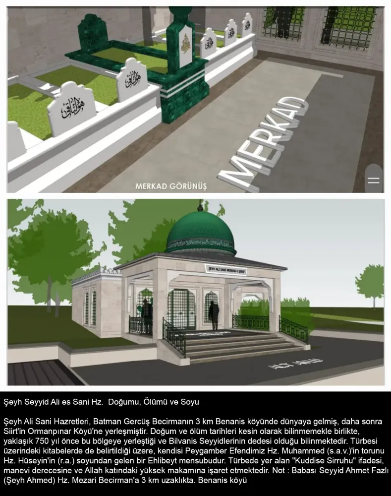 Türbeler üzerindeki kitabelerde de ifade edildiği üzere, Hz. Peygamber’in (s.a.v.) torunları olan bu aile, asırlardır Siirt, Batman ve çevresinde hem dini ilimlerde hem de toplumsal hayatın inşasında önderlik yapmıştır. Türbede yer alan “Kuddise Sırruhu” ifadesi, Şeyh Ali es Sani Hz.’nin Allah katındaki yüksek makamına işaret etmektedir.