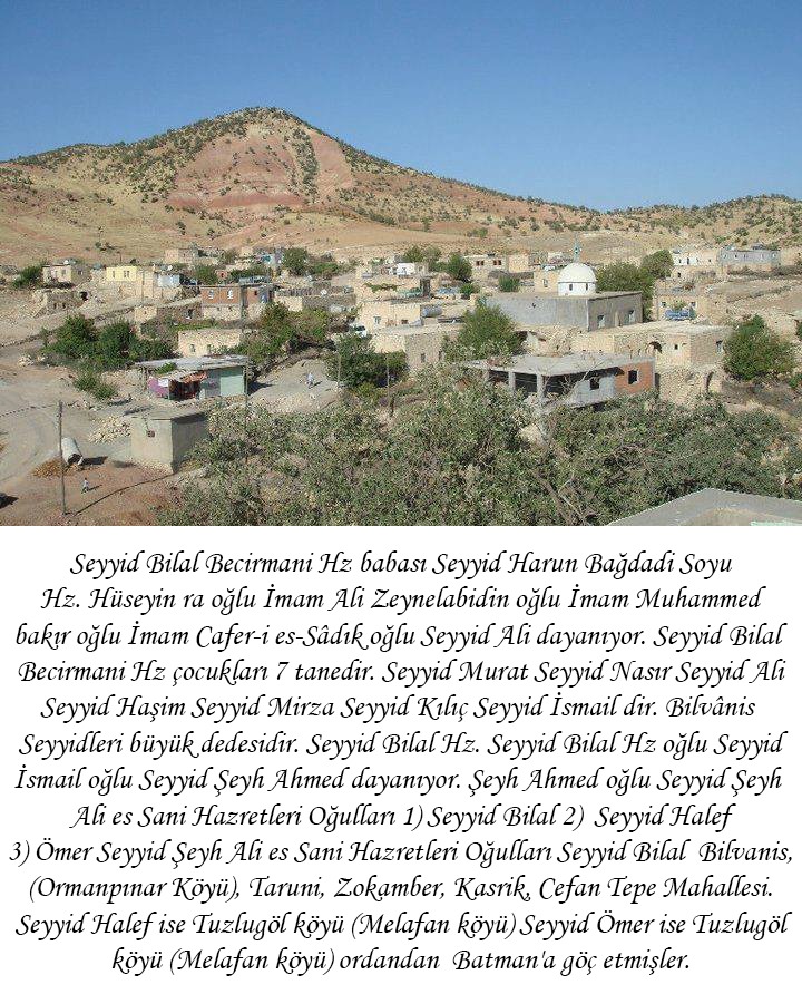 Batman Gercüş’e bağlı Beciroman’a 3 km mesafede bulunan Benanis köyünde dünyaya gelen Şeyh Seyyid Ali es Sani Hazretleri, Seyyid Harun Bağdadi’nin soyundan, Hz. Hüseyin (r.a.) evladına dayanmaktadır. Soy silsilesi, İmam Ali Zeynülabidin – İmam Muhammed Bakır – İmam Cafer-i Sadık üzerinden Seyyid Ali’ye ulaşmaktadır. Bu kutlu nesil, yaklaşık 750 yıl önce bölgeye yerleşmiş ve Bilvanis Seyyidleri olarak tanınmıştır.