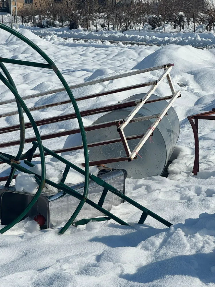 Bu hedef doğrultusunda Veyselkarani Belediyesinin de katkılarıyla, binanın yan tarafına yaklaşık 600 metrekarelik ek bir üretim alanı geçtiğimiz yıl inşa edildi. Ancak son kar yağışıyla birlikte bu yeni ek binanın çatısı çöktü.