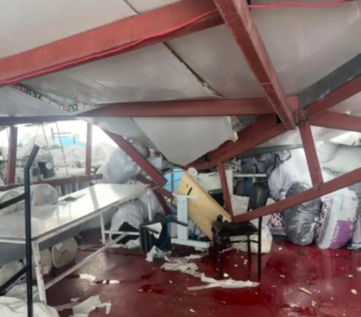 çatı enkazının altında kaldı ve kullanılamaz hale geldi.