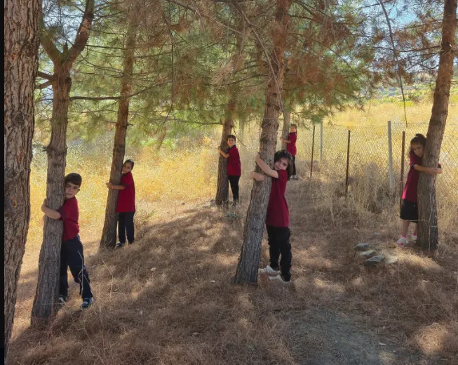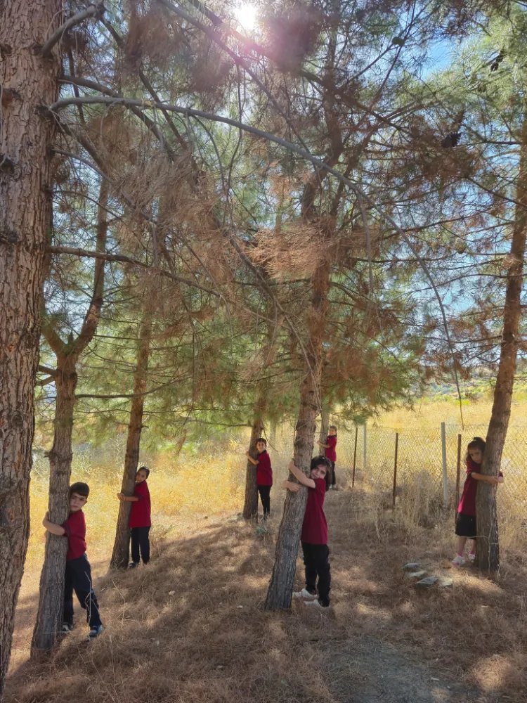Okulun ilk gününde bir araya gelen minikler, fidan gibi büyüyen bedenleriyle ağaçlara sarılarak çevreye duyarlılık mesajı verdi. Öğrencilerin “#HerÇocukBirFidan” sloganıyla verdikleri bu anlamlı poz, hem doğa sevgisini hem de geleceğe umutla bakan bir nesli simgeledi.