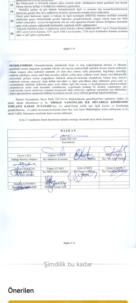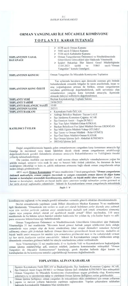 24 Haziran 2025 tarihinde Kaymakam Fatih Özcan başkanlığında toplanan Orman Yangınları ile Mücadele Komisyonu, yangınların önlenmesine yönelik 26 maddelik detaylı karar paketi açıkladı.